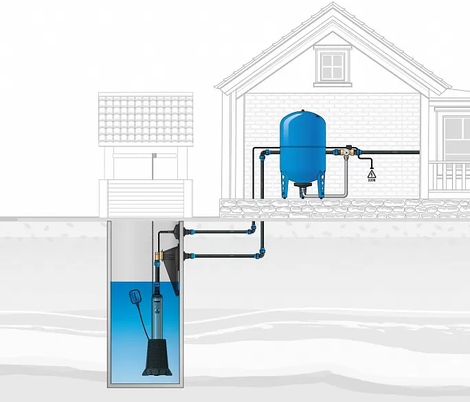 Диаметр подсоединяемой напорной трубы – 32 мм, трубы для кабеля 20 мм.
