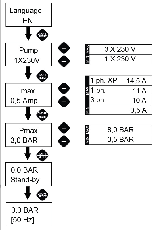 • Цифровая индикация давления, напряжения, тока и частоты двигателя.