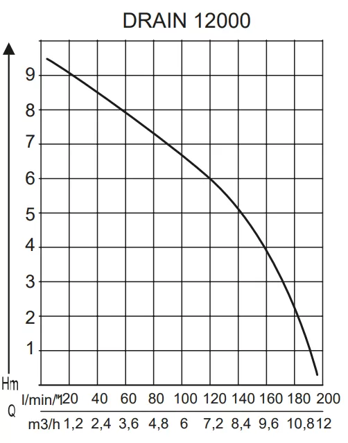 Графические характеристики дренажного насоса AL-KO DRAIN 12000 Comfort