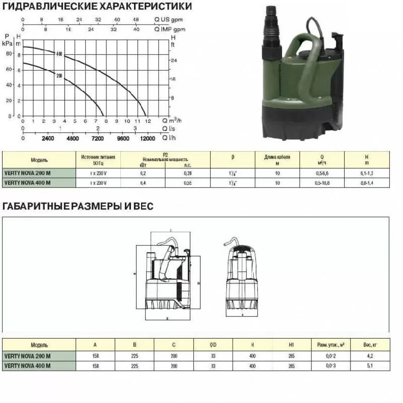 Схема дренажного насоса DAB VERTY NOVA 400 M