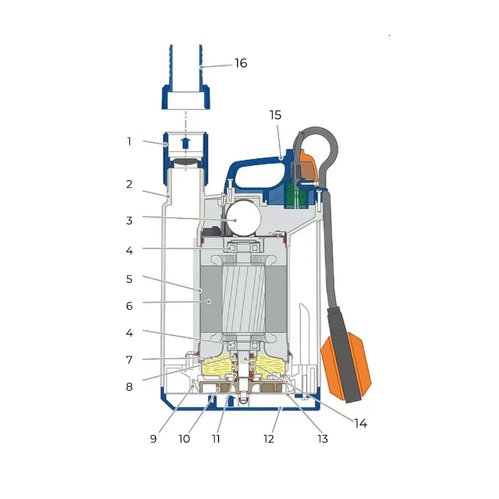 Серия ТОР представляет собой уникальные погружные дренажные насосы, которые отличаются своей эффективностью и надежностью. Они специально разработаны для использования в системах дренажа и обеспечивают автоматическую работу. Одной из ключевых особенностей насосов серии ТОР является их центробежный тип механизма с открытым рабочим колесом. Рабочее колесо, состоящее из заднего диска и лопаток, находится на ведущем валу. Когда жидкость попадает в насос через всасывающую решетку, она поступает во вращающийся лопаточный канал. Здесь жидкость получает радиальное движение от центра к периферии, что приводит к увеличению скорости потока и созданию давления.