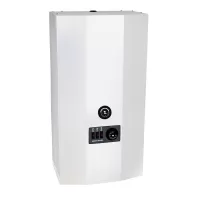 В конструкции котла предусмотрены элементы обвязки – сняв переднюю панель, мы увидим расширительный бак на 6 литров, циркуляционный насос и группу безопасности. Здесь же располагается автоматический спускник воздуха. За коммутацию нагревательных элементов отвечают электромагнитные реле. Безопасность обеспечивается автоматическими выключателями от компании Schneider Electric. Котёл предназначен для работы в отопительных системах замкнутого типа с принудительной циркуляцией теплоносителя.