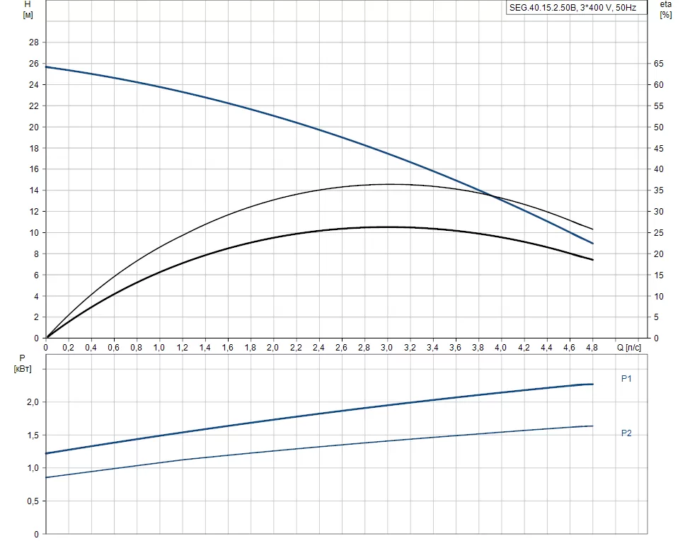 Графические характеристики фекального насоса GRUNDFOS SEG.40.15.2.50B