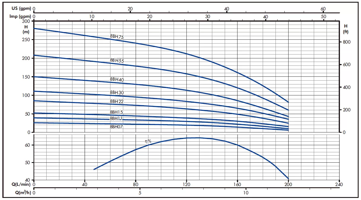 Максимальное количество метров на которое насос может поднять воду.