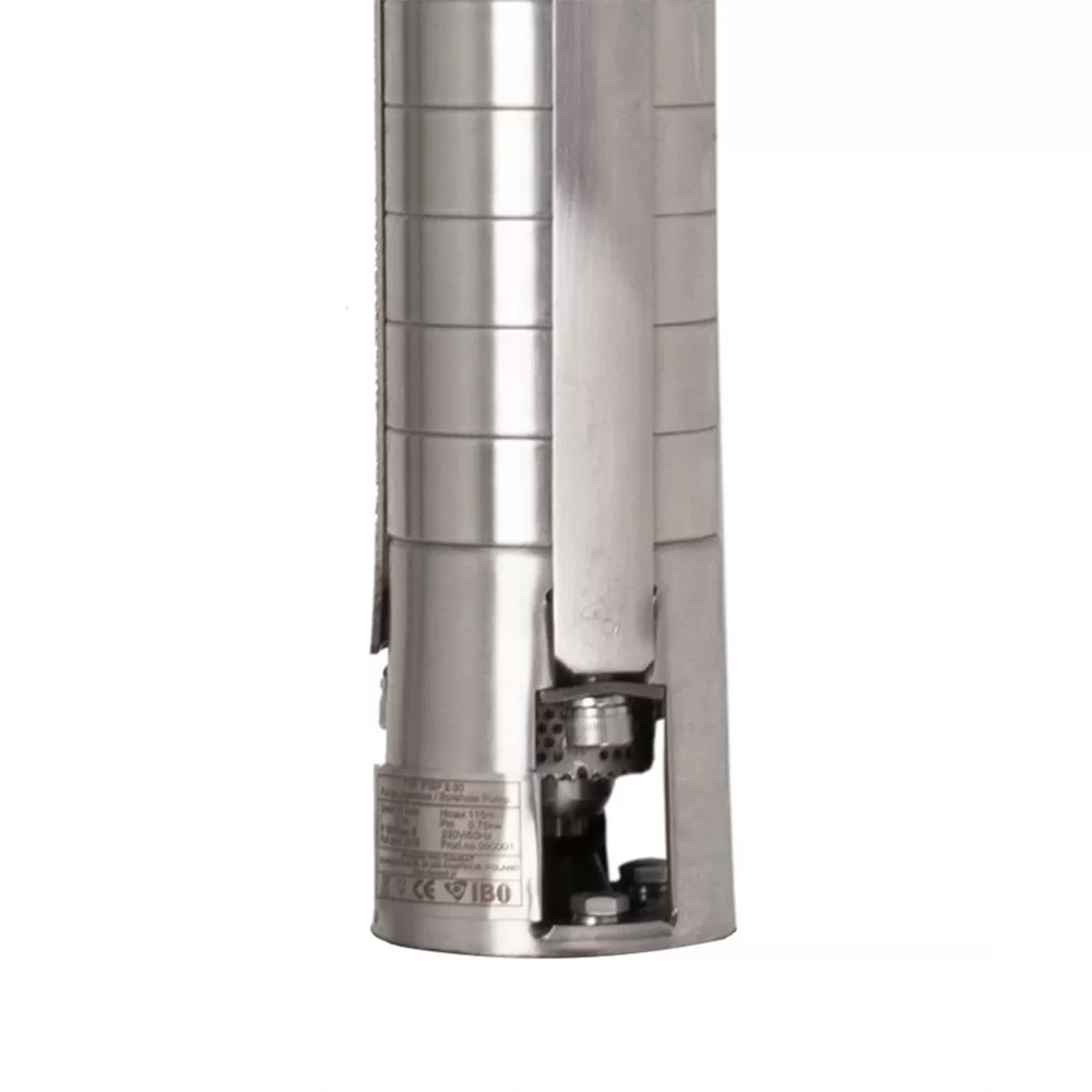 Погружной насос для скважины IBO 3ISP 3/32 диаметром 76 мм выполнен полностью из нержавеющей стали, предназначенные для установки в скважинах диаметром не менее 90 мм. Максимальное содержание песка в воде – до 0,3%. Насос IBO 3ISP 3/32 является одним из самых прочных в отношении конструкции насосом для глубоких скважин благодаря используемым материалам. Заборная часть и напорный патрубок, корпус, вал и роторы 100% изготовлены из нержавеющей стали. Насос поставляются в комплекте с 3–дюймовыми масляными двигателями. Скважинный насос обладает сбалансированными напорно-расходными характеристиками. Максимальный напор насоса составляет 105 м, максимальная производительность равна 3.9 м³/час, при этом мощность электродвигателя 1100 Вт. Насосы ИБО серии 3ISP являются первыми насосами на Белорусском рынке, полностью изготовленными из нержавеющей стали диаметром 76мм. Насос комплектуется кабелем 1 м, предназначенный для погружением в воду. По желанию заказчика возможно удлинение кабеля на любую длину.
