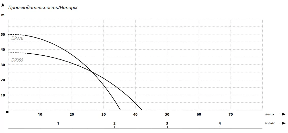 Графические характеристики поверхностного насоса IBO DP 355