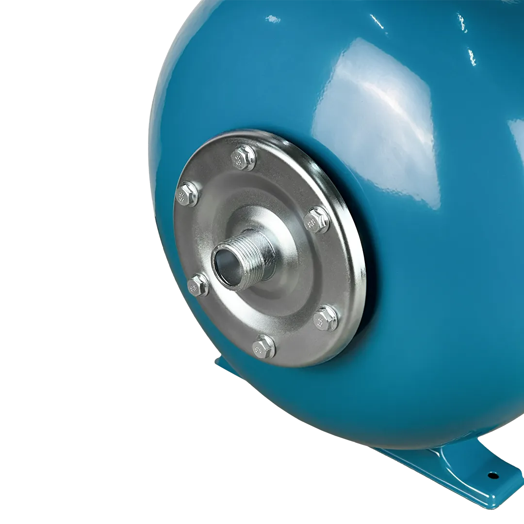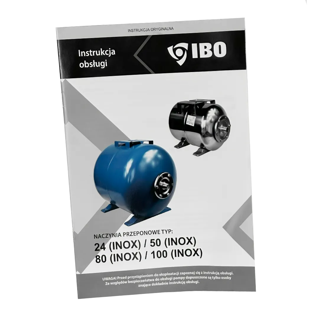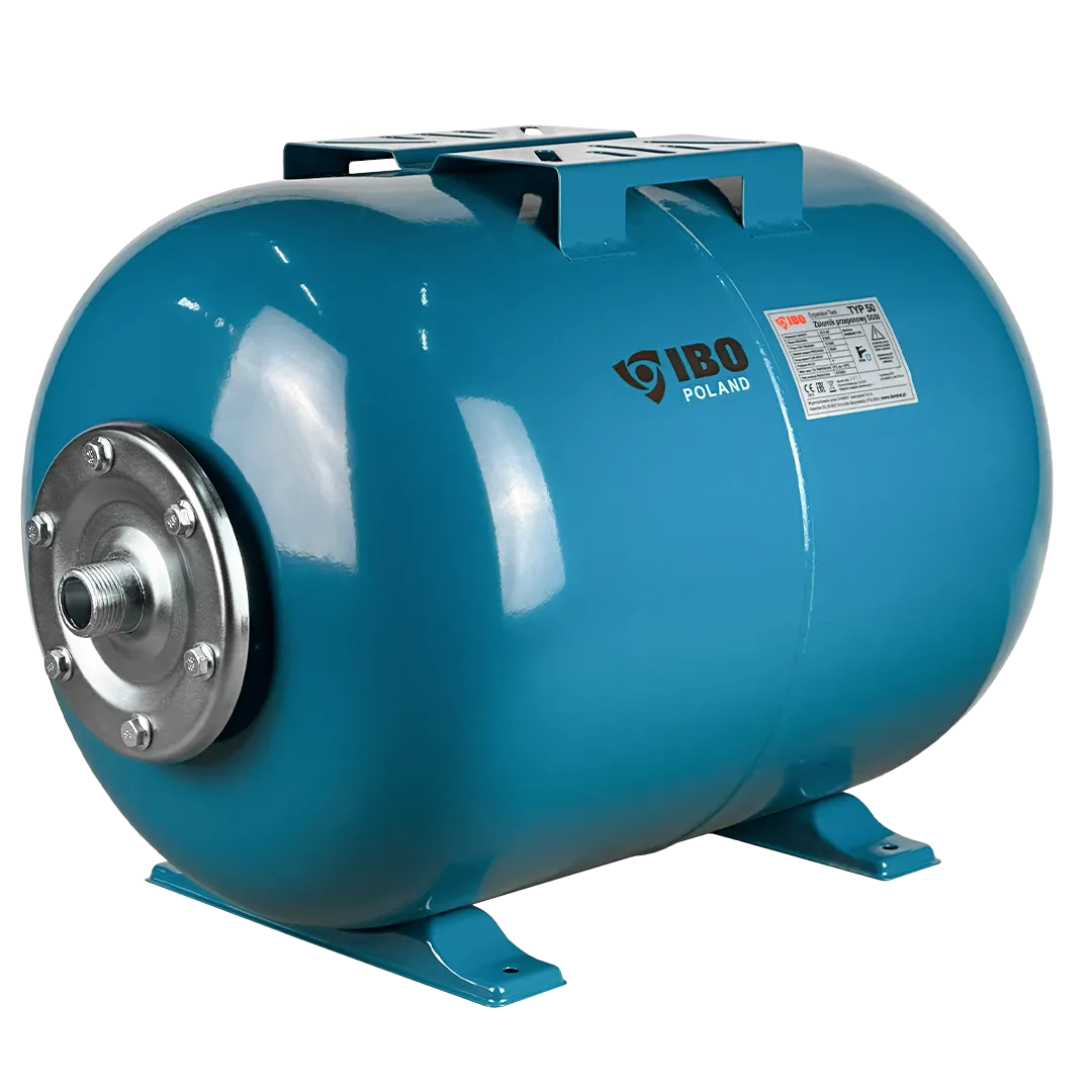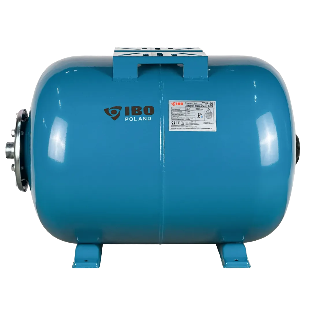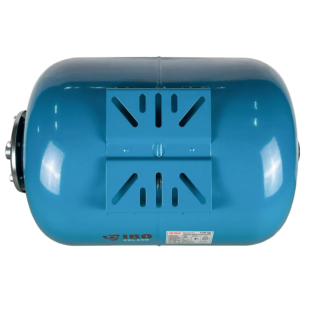 Горизонтальный мембранный бак для воды IBO объемом 50 литров. Бак выполнен из стали и покрыт специальным антикоррозионным составом. Мембрана бака выполнена из пищевой резины на основе бутилкаучука. Бак снабжен приварной площадкой для установки поверхностного насоса. В нижней части бака установлены металлические кронштейны с целью крепления бака к поверхности.