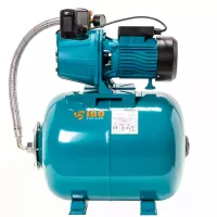 Одноступенчатая, самовсасывающая, насосная станция от Польского производителя IBO JET 100A TF 50л+защита по сух,ходу, оснащенный системой, увеличивающей мощность всасывания благодаря использованию трубки Вентури, предназначен для перекачивания чистой, холодной воды из собственных водозаборов и повышения давления. Максимальный забор воды до 8 метров, максимальный напор гидрофора 50 м, максимальна производительность 3.6 м³/час. При этом насосная станция обладает сравнительно не большой мощностью 1100 Вт. На насосной части установлена система автоматики на базе реле давления, защита от работы без воды в насосе есть. Насос установлен на баке объемом 50 л, которы предохраняет насос частых включений / отключений и компенсирует гидроудар в системе водоснабжения. Корпус насоса изготовлен из прочного чугуна, а двигатель оснащен тепловой защитой. Насос имеет шнур питания с вилкой 0.5 м. Насос также доступен с аксессуарами или в гидрофорном комплекте.