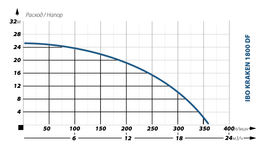 Графические характеристики фекального насоса IBO KRAKEN 1800 DF (380В)
