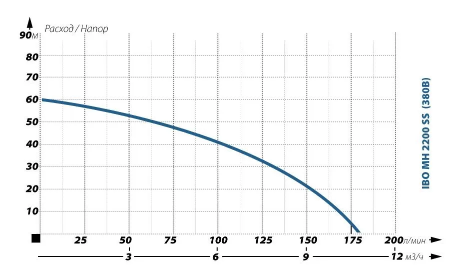Графические характеристики поверхностного насоса IBO MH 2200 INOX 380В