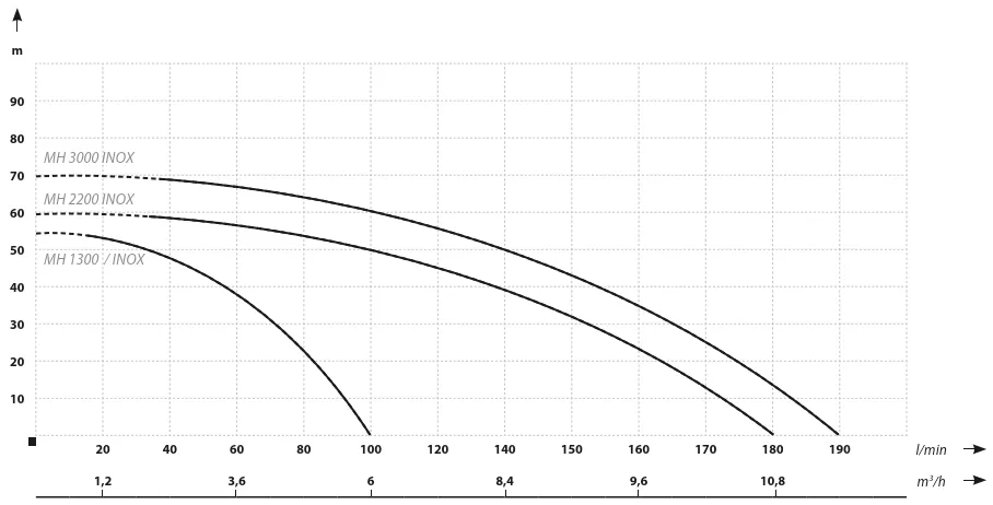 MH 3000 INOX имеет высокую мощность в 3000 Вт, что обеспечивает надежную работу и отличную производительность. Максимальный напор составляет 70 метров, а максимальный расход 11.4 м³/час, что делает его идеальным выбором для подачи воды на значительные расстояния.