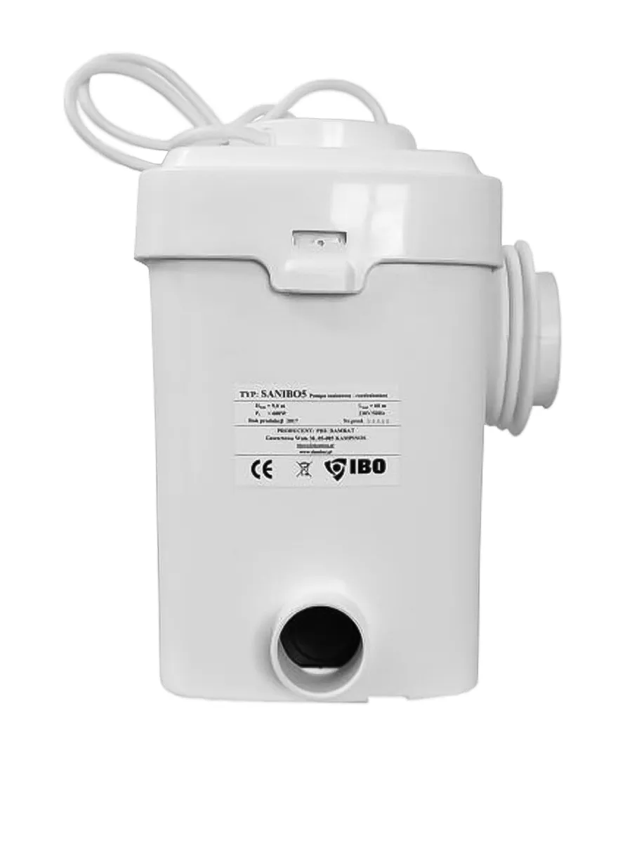 IBO SANIBO 5 – это специализированная канализационная установка, предназначенная для эффективного отведения сточных вод от раковин, душевых кабин, писсуаров и унитазов, расположенных ниже уровня коллектора канализационной системы. Эта технология также находит применение в удаленных местах, где организация канализации самотеком нецелесообразна или невозможна.