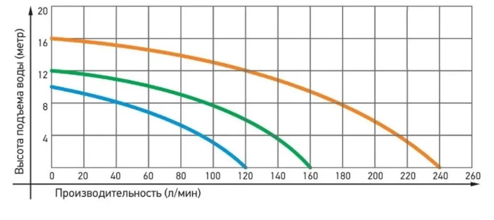Графические характеристики циркуляционного насоса JEMIX WRF 50/12