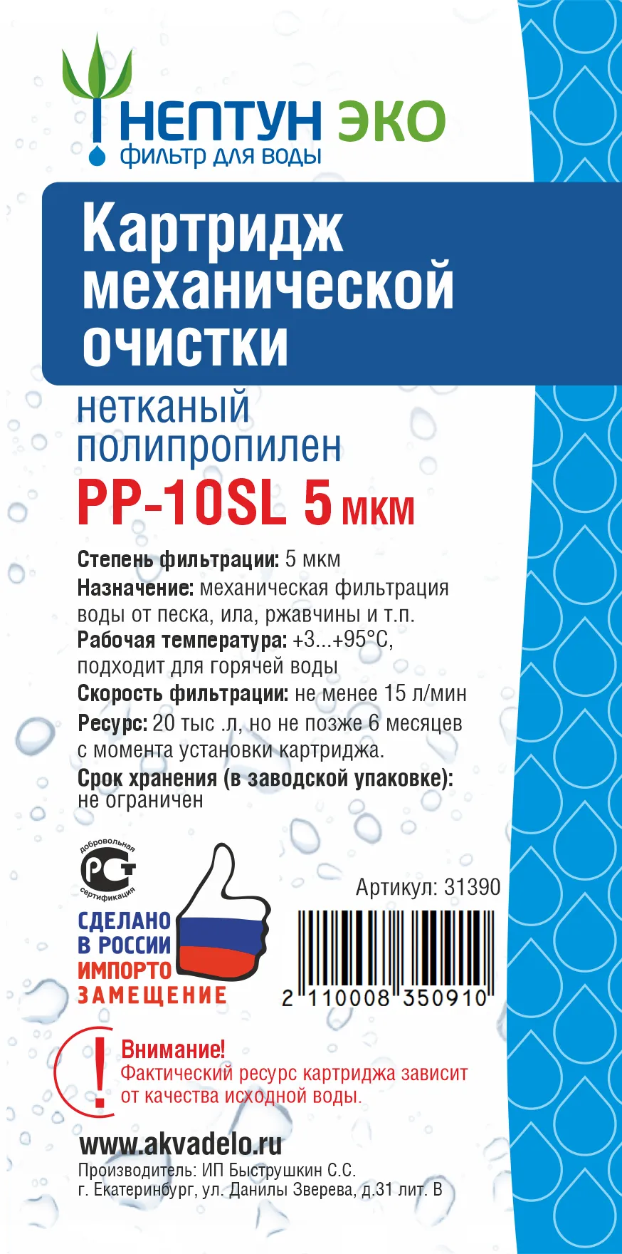 Надежность: Особо прочный внутренний слой исключает деформацию под высоким давлением и предотвращает выброс частиц полипропилена в очищенную воду.