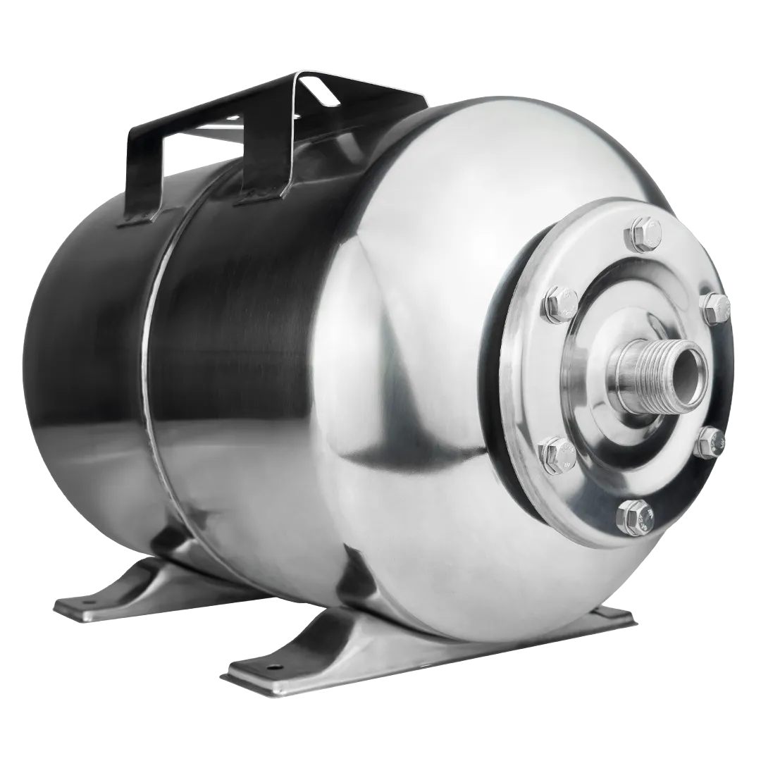 Гидроаккумулятор для воды MAXPUMP H-24 горизонтального исполнения предназначен для систем холодного водоснабжения. Гидроаккумулятор служит для накапливания запаса воды объемом до 24 литров, снижения вероятности возникновения гидравлических ударов в системе, а также сокращения количества пусков насоса, тем самым продлевая срок службы насоса. Конструкция гидроаккумулятора представляет собой стальной корпус, окрашенный в зеленый цвет, со сменной мембранной, изготовленной из высококачественного материала EPDM, опорными ножками у основания бака, воздушным клапаном и площадкой для установки насоса. Горизонтальные гидроаккумуляторы, благодаря установочной площадке, расположенной на поверхности бака, могут использоваться с поверхностными насосами.