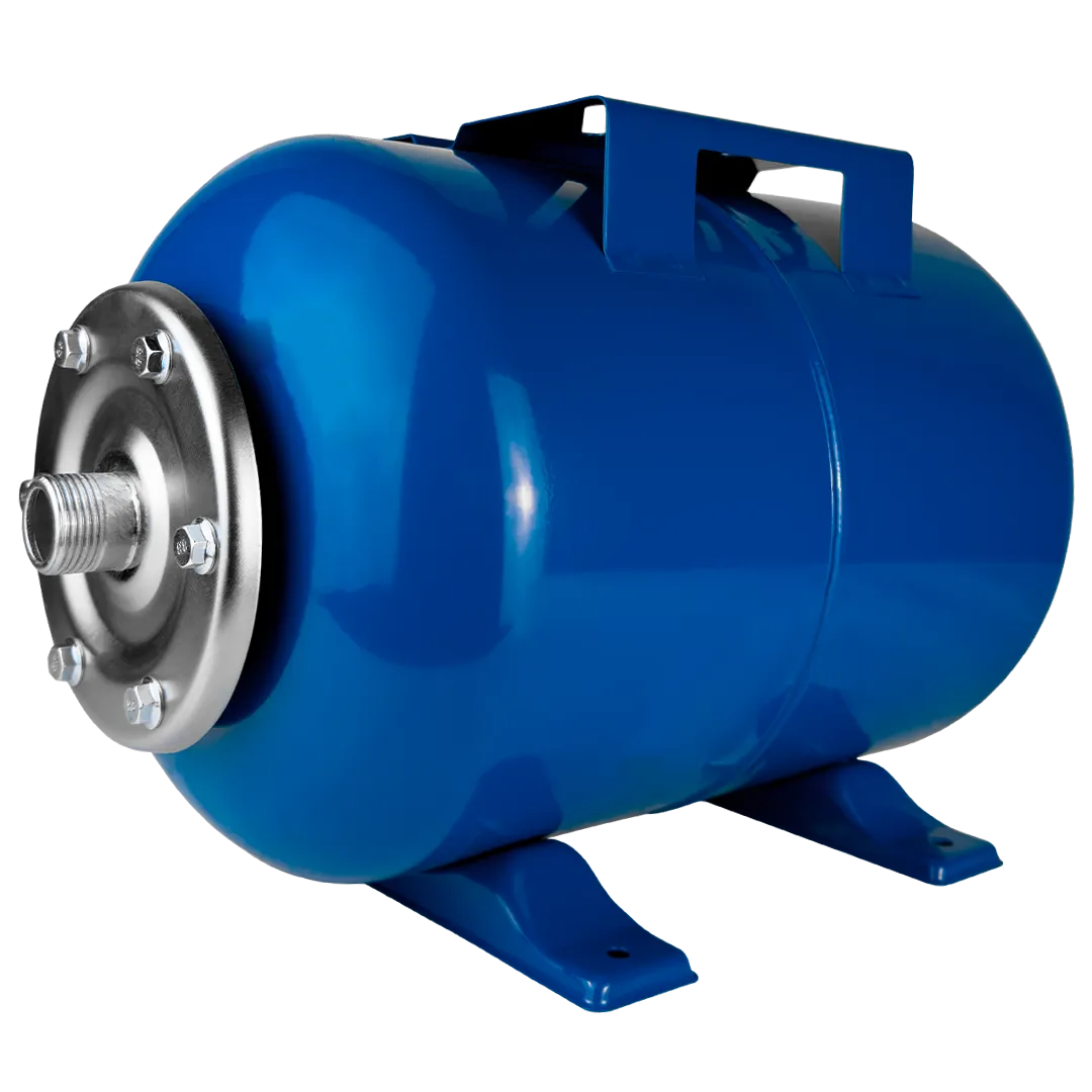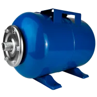 Гидроаккумулятор для воды MAXPUMP H-50 горизонтального исполнения предназначен для систем холодного водоснабжения. Гидроаккумулятор служит для накапливания запаса воды объемом до 50 литров, снижения вероятности возникновения гидравлических ударов в системе, а также сокращения количества пусков насоса, тем самым продлевая срок службы насоса. Конструкция гидроаккумулятора представляет собой стальной корпус, окрашенный в зеленый цвет, со сменной мембранной, изготовленной из высококачественного материала EPDM, опорными ножками у основания бака, воздушным клапаном и площадкой для установки насоса. Горизонтальные гидроаккумуляторы, благодаря установочной площадке, расположенной на поверхности бака, могут использоваться с поверхностными насосами.
