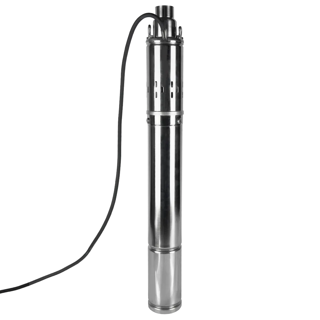 Винтовой скважинный насос MAXPUMP maxiVINT насос имеет встроенный в корпусе пусковой конденсатор. Диаметр насоса идеально подходит для скважин 90мм и может использоваться в скважинах до 125мм. Насос отлично подойдет для водоснабжения односемейного дома, максимальный напор насоса составляет 102 м, а производительность 1.98 м³/час. Двигатель насоса обладает мощностью 750 Вт, матерьял обмотки двигателя медь. Корпус насоса выполнен из нержавеющей стали. Насос укомплектован с завода кабелем 25 м. Конструкция насоса проста и легка в обслуживании. Внутри насоса нет привычного вала, на который насажены крыльчатки, разгоняющие питьевую воду для подачи вверх по трубе. Конструкция здесь больше напоминает обычное сверло – шнек, которое при вращении придает жидкости ускорение.