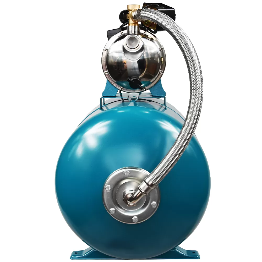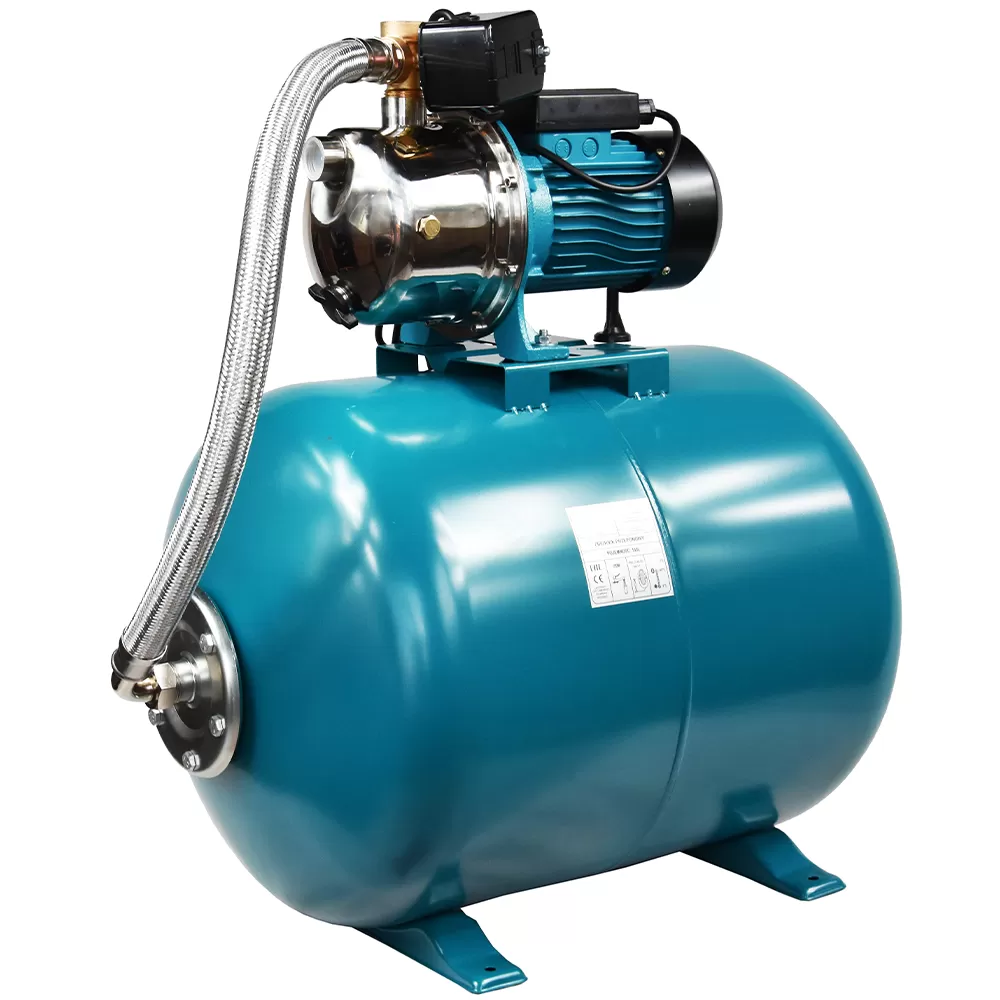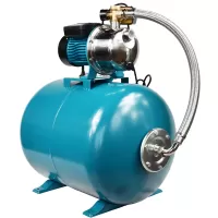 Насосная станция IBO AJ 50/60 80л+защита по сух.ходу оснащена системой увеличивающей мощность всасывания благодаря использованию трубки Вентури, благодаря данной системе насос способен поднять воду с глубины до 8 метров. Корпус насоса и вал в части, контактирующей с водой, выполнены из нержавеющей стали (версия INOX). Насосная станция имеет производительность в 3.6 м³/час, данной производительности будет достаточно чтобы организовать односемейного дома. За давление воды из крана отвечает напорная характеристика, максимальный напор в насосной станции IBO AJ 50/60 80л+защита по сух.ходу достигает 50 м. Насосная станция состоит из поверхностного самовсасывающего насос, системы автоматики на базе реле давления и манометра, гидроаккумулятора объемом 80 л. Насос имеет шнур питания с вилкой 0.5 м. Двигатель насоса оснащен тепловой защитой и имеет мощность в 1100 Вт.