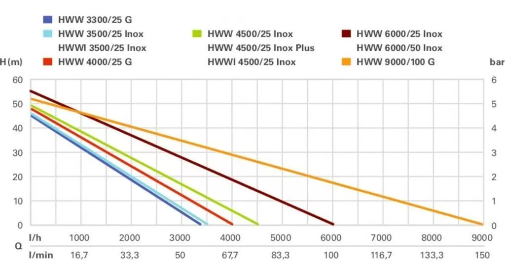 Графические характеристики насосной станции Metabo HWW 3300/25 G