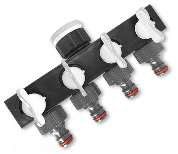 Разделитель Bradas четырехканальный с кранами и резьбой 1"-3/4"
