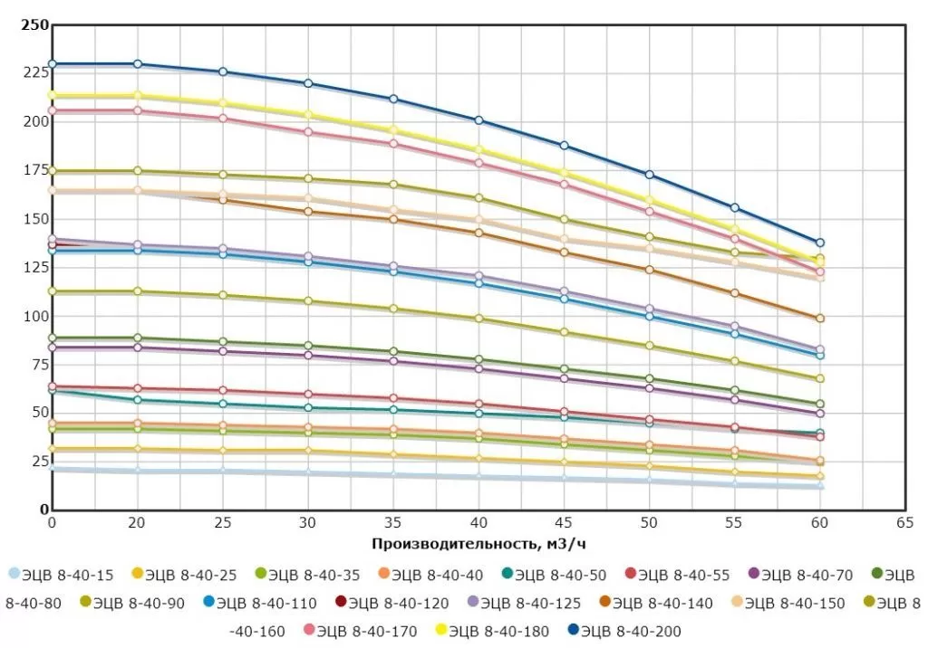 Графические характеристики ЭЦВ 8-40-60н (70)