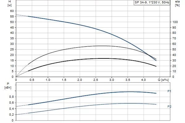 Графические характеристики Grundfos SP 3A-9