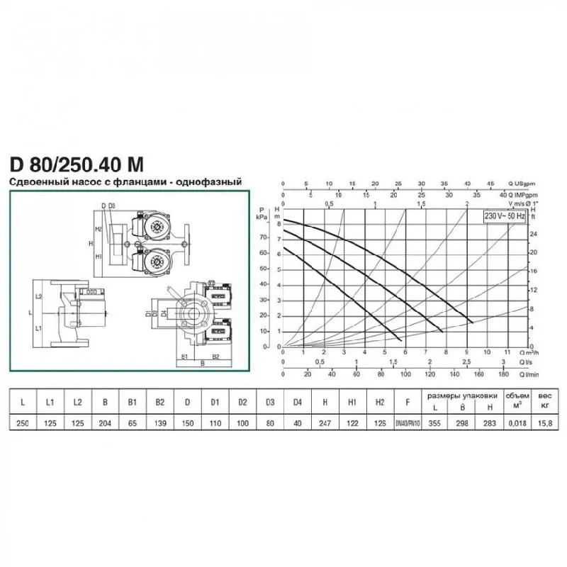 Циркуляционный насос DAB D 80/250.40 M предназначен для эксплуатации в системах отопления, где предъявляются повышенные требования к надежности. Отличительной чертой серии D является наличие второго дублирующего насоса, который автоматически включается в работу при поломке первого насоса. Таким образом в одном корпусе расположены сразу два отдельных насоса которые полностью дублируют друг друга. Присоединение насоса с помощью фланцев.