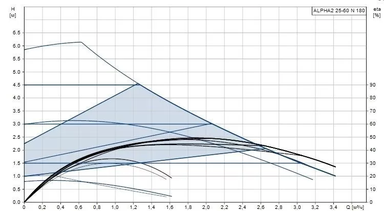 Циркуляционный насос Grundfos ALPHA2 25-60 N NEW используется для циркуляции воды или гликольсодержащих жидкостей в регулируемых системах отопления и в системах отопления с переменным расходом. ALPHA2 NEW оснащены 10 режимами управления: 3 режима фиксированной скорости, 3 режима пропорционального давления, 3 режима постоянного давления и наиболее энергоэффективный режим для работы в контуре с радиаторами: режим AUTOADAPT.