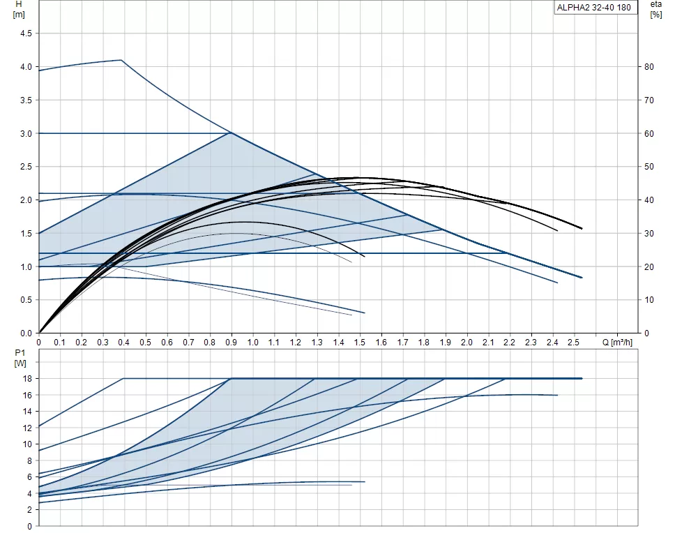 Циркуляционный насос Grundfos ALPHA2 32-40 180 используются для циркуляции воды или гликольсодержащих жидкостей в регулируемых системах отопления и в системах отопления с переменным расходом. Также применяются для циркуляции в системах ГВС. Функция AUTOadapt ALPHA2 регулирует перепад давления в соответствии с текущими потребностями системы, нет необходимости регулировать насос самостоятельно – он все сделает за вас. Также есть 3 фиксированные скорости, 3 режима постоянного давления, 3 режима пропорционально давления.