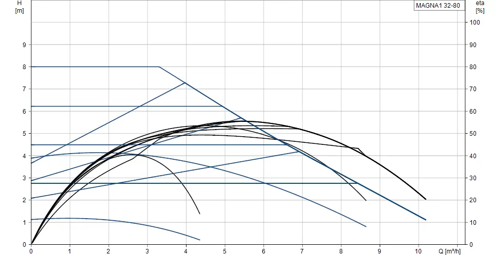 Циркуляционный насос Grundfos MAGNA1 32-80 180 может выступать в качестве: главного насоса, насоса для узлов смешения, насоса для контура поверхности нагрева, насоса для контура поверхности охлаждения. В отличие от насосов GRUNDFOS UPS, циркуляционный насос GRUNDFOS MAGNA1 особо эффективен при работе в системах с переменным расходом. По сравнению со своим предшественником, GRUNDFOS MAGNA1 имеет 9 режимов управления, которые позволяют подобрать наиболее оптимальный режим работы насоса в изменяющихся условиях эксплуатации, что способствует значимому снижению затрат на электроэнергию при эксплуатации насосов.