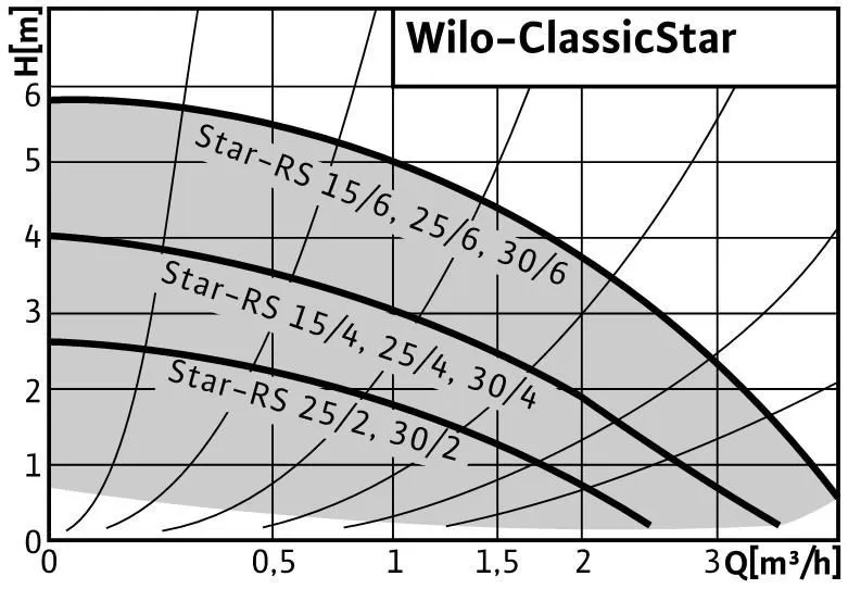 Циркуляционный насос WILO STAR-RS 25/4 с мокрым ротором для установки в трубах с ручной трехступенчатой регулировкой частоты вращения. С устойчивым к токам блокировки электродвигателем. Корпус насоса из серого чугуна (в зависимости от типа может применяться бронза), рабочее колесо из упрочненного стекловолокном синтетического материала, вал из нержавеющей стали с угольными подшипниками скольжения с металлической пропиткой. Серийное применение в системах холодной воды с температурой до -10 °C.