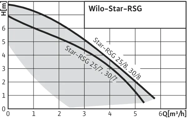 Циркуляционный насос WILO STAR-RSG 25/8 с мокрым ротором и резьбовым соединением. Возможен выбор ступеней частоты вращения для согласования мощности.
